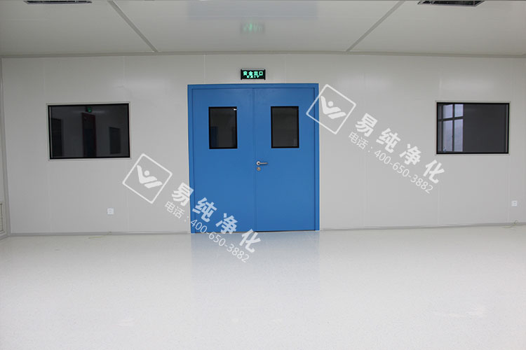 車間內(nèi)部全部采用A1級(jí)凈化板材,芯材為琉陽鎂芯材凈化板,地板采用LG品牌PVC防靜電地板,墻體設(shè)置安全門,此安全門為易純專業(yè)定制摁壓式安全門,全透明鋼化玻璃,也是此次工程的一大亮點(diǎn)。頂部采用48W超薄型LED燈具,吸頂安裝,既美觀又節(jié)能。傳遞窗采用雙層中空門,門體嵌入式安裝,內(nèi)底部圓弧設(shè)置無死角。門窗全部采用雙層中空窗及鋼制成品門,帶德國多瑪閉門器。